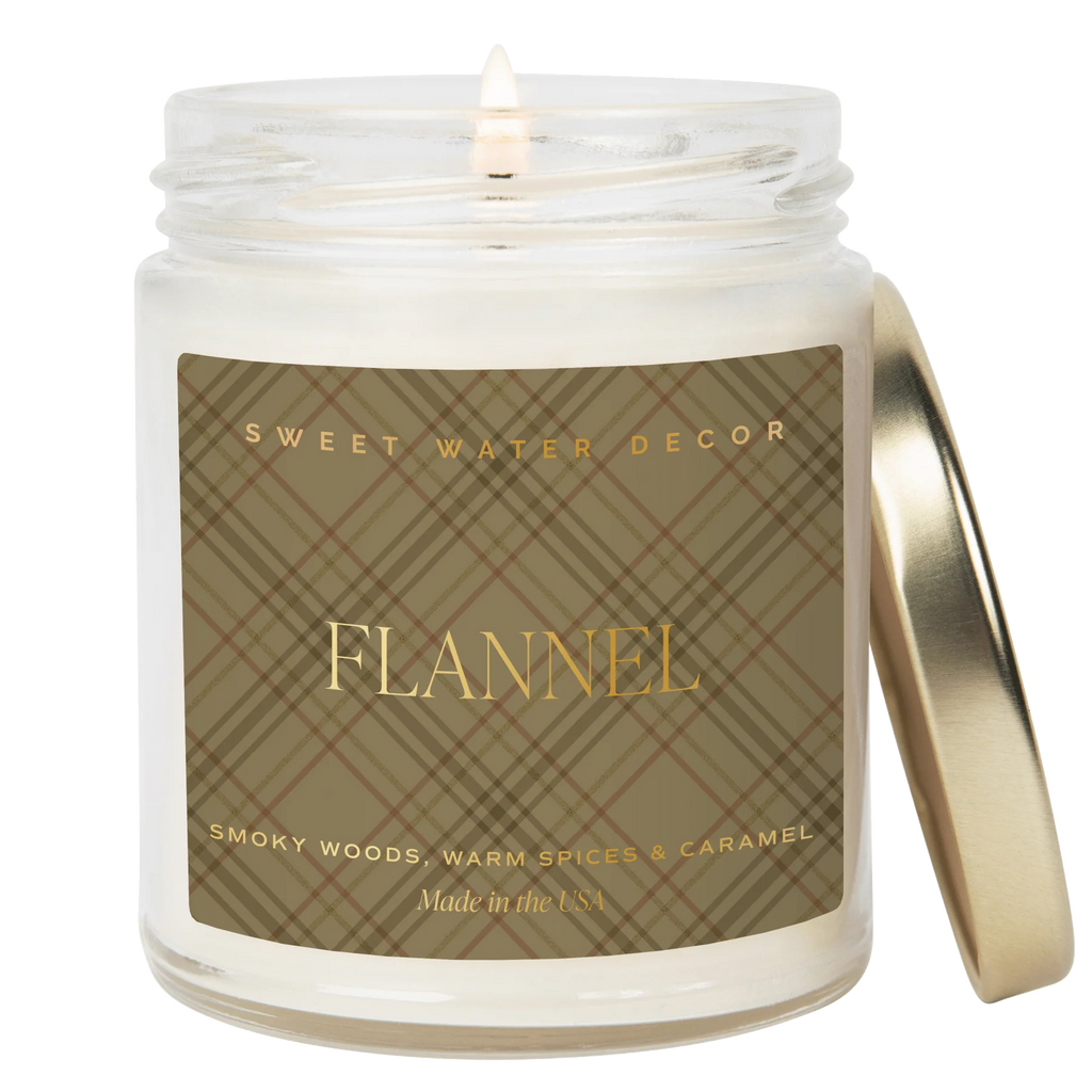 Flannel is a soft but bold fragrance blending the sweet and woodsy notes of fall together perfectly. Imagine being at a bonfire with your best friends having the time of your lives. Vanilla, caramel, cinnamon, amber, tonka, smokey woods and musk make this a one-of-a-kind fall scent. You'll want to burn this all year long!