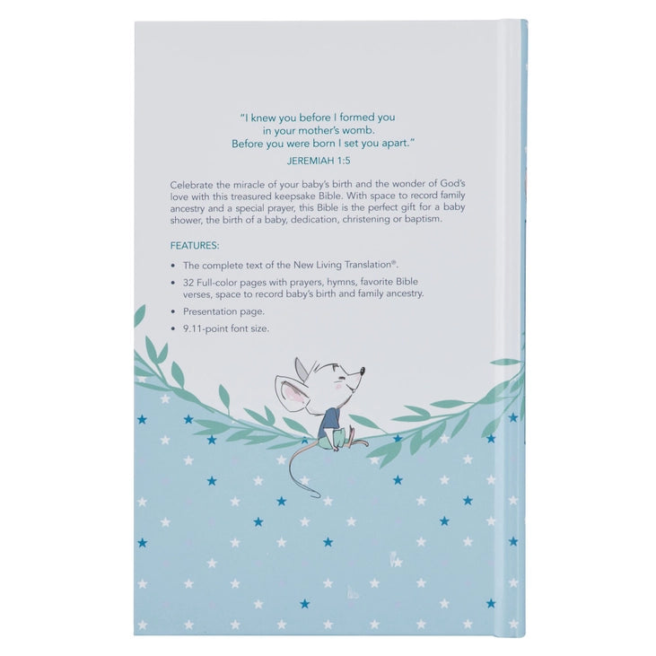 Celebrate God's gracious care and provision for the safe arrival of your baby boy with the Blue Hardcover NLT Keepsake Bible for Boys. This cherished keepsake is a symbol of the enduring covenantal bond between God and his children and celebrates the wonder of life's most precious gift.