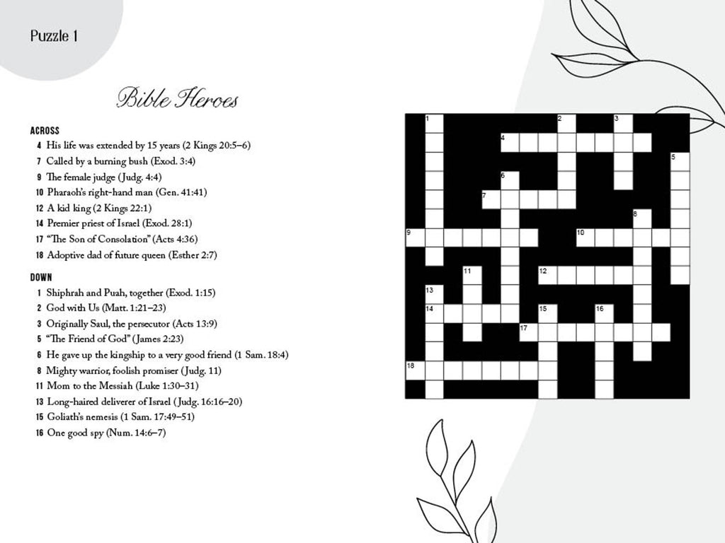 Clues are accompanied by Bible references, answers are provided, and the larger type and puzzle grids are easy on the eyes.