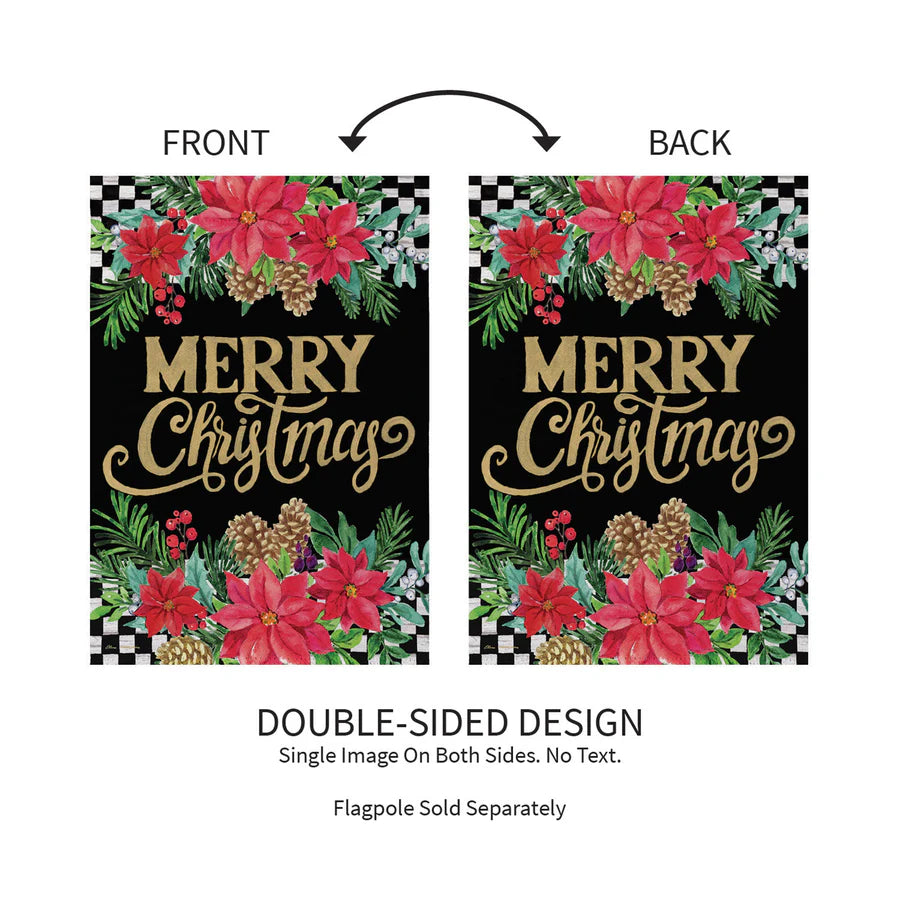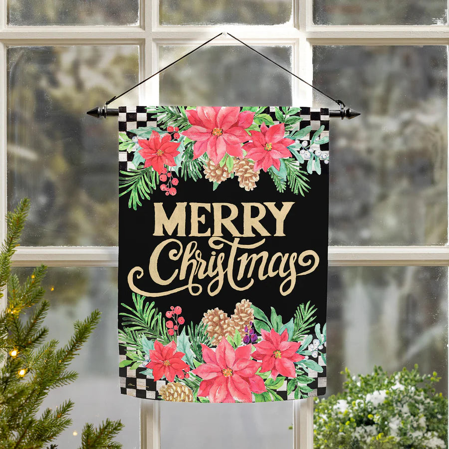 Add magic and wonder to any garden or yard when you hang up this beautiful flag. Featuring vibrant florals and a heartwarming message, this flag is perfect for the festive season. Flag is crafted of medium-weight suede fabric made from recycled plastic that provides a soft and durable texture. Artwork is heat transferred onto the sun-blocking material so that it is easily viewed from both sides. The weatherproof flag will not fray or fade with continued outdoor use. This flag features a sleeve for use with any standard flagpole or stand, sold separately.