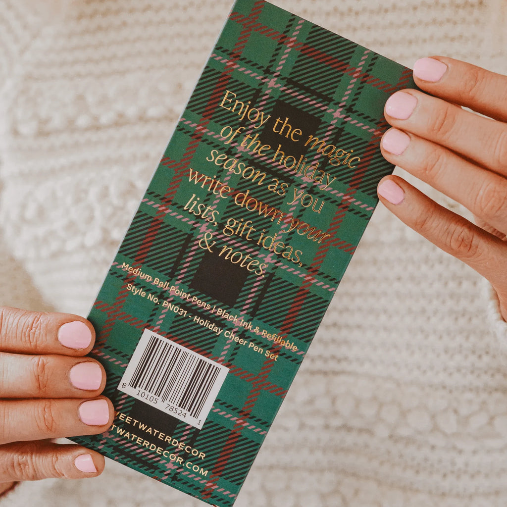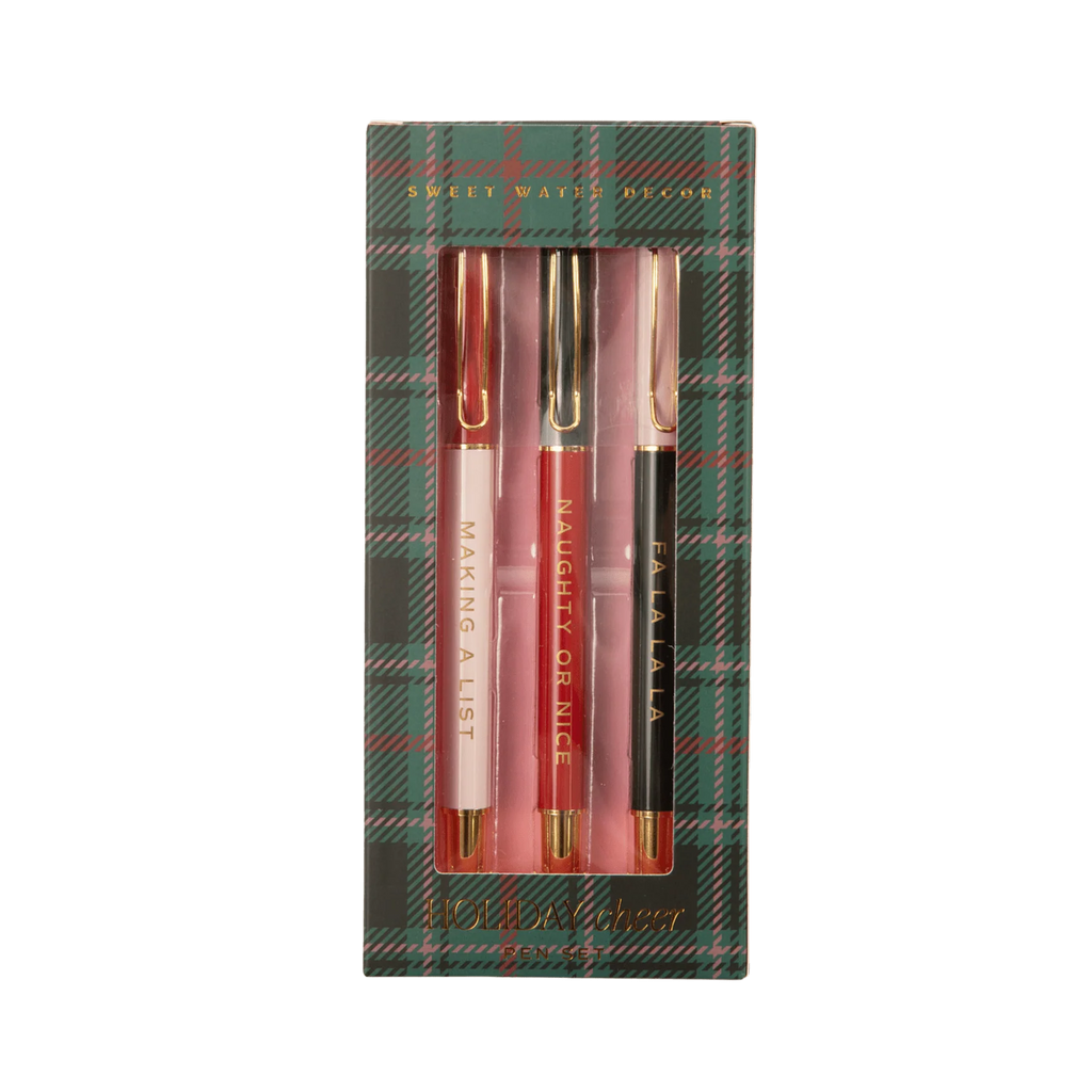 Spread holiday cheer with each pen stroke when you use our Christmas pen set. This charming three-pack of pens is perfect for jotting down your gift list, baking needs, Christmas cards, and more. Each pen features delightful holiday-themed phrases, adding a touch of cheer to all your writing tasks. Ideal for spreading seasonal joy, this set also makes a wonderful stocking stuffer for friends and family.