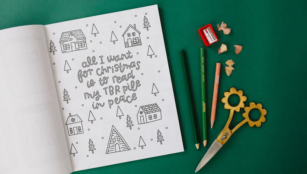 Merry Bookmas! This coloring book features the perfect motto for any bookworm, avid reader, teacher, or Christmas fan! With heavy, single-sided pages to prevent bleed-through, this reading- and winter-themed activity book is a great holiday activity for adults and children alike, making it the perfect gift for kids, moms, teachers, and more!