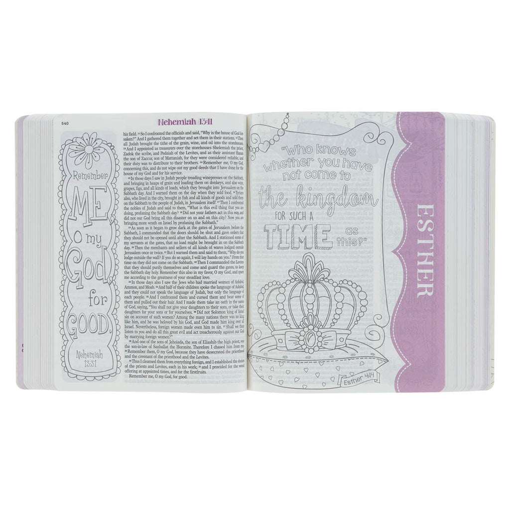 Encourage your young princess to live out her creativity and learn about her faith by working through the Pink Floral Heart Flexcover My Creative Bible for Girls—an illustrated journaling Bible specially designed for young girls who love to add color to everything they do.