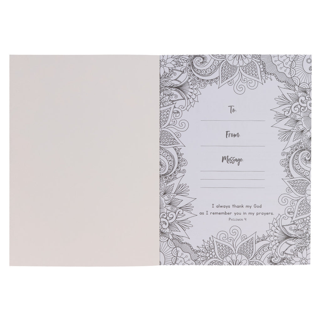 A line-drawn presentation page invites you to start coloring on page one and allows you to personalize the prompted journal when you give it as a gift. Alongside each guided prayer page, you can color and express your heart through coloring pages paired with inspirational quotes on prayer, beautifully designed Scripture verses to color, and prompted pages for you to complete and make uniquely yours.
