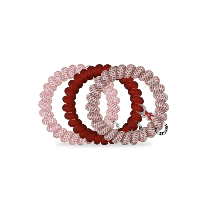 Roll Tide! Large Hair Ties in Crimson and Gray offer a strong grip without damage, doubling as a chic wrist accessory when not in use. Your new favorite hair essentials all year round. Shop your favorite University of Alabama hair accessories now! Roll tide!