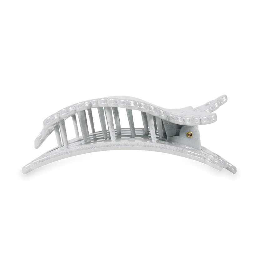 The Snowflake Flat Hair Clip is equivalent to the size of a Teleties Medium Flat Round Hair Clip.